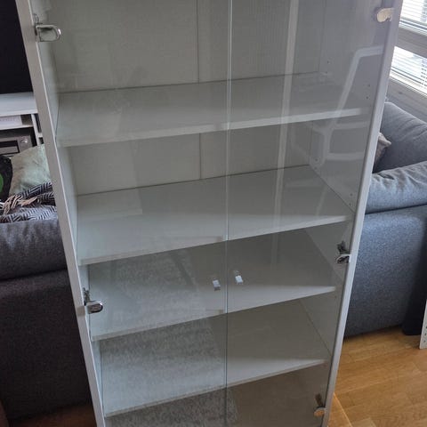 Myydään Sotka Monaco-vitriini. Vitriinissä on lasiset hyllyt ja itse asennetut led-valot. Laatikon pohjaa on tuettu teipeillä(viimeinen kuva).