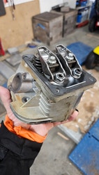 Työleveys 76cm. Viimetalvena vaihdettu koko kansi venttiileineen. Vanhasta kannesta nousi pakoventtiilin ohjuri ja jumitti venttiilin. Uusi kansi tiivisteineen vähän yli 200€. Vanhan kannen saa mukaan, siitä saa ainakin keinuvivut ja imuventtiilin varaosiksi.