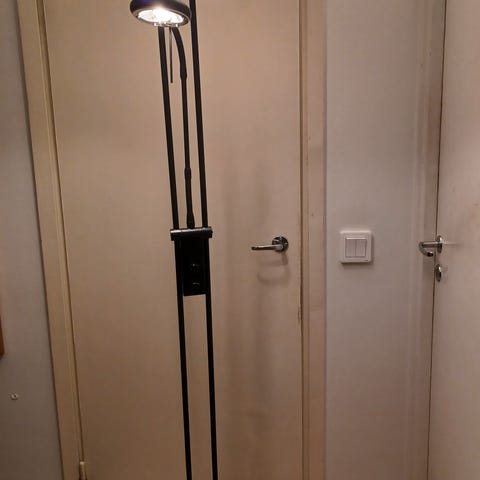 Kaunis laiva-aiheinen jalkalamppu. Jalka massiivipuuta. Varjostimessa purjelaivakuvio. Kokonaiskorkeus on 170cm varjostimen yläreunaan.