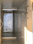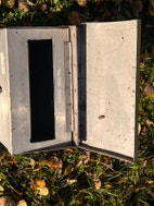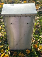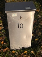 Teetetty rosterinen postilaatikko. Pienen aukon sisäreunat terävät. Välilevyllä saa lisätilaa posteille. Mahdollisuus lukita munalukolla.