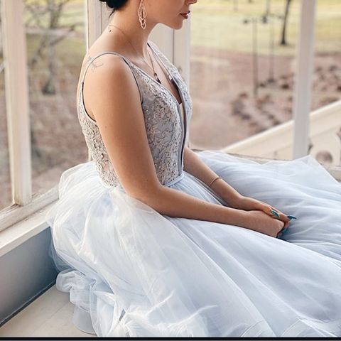 Yhdet tanssiaiset nähnyt Gino Cerruti -special occasion wear juhlamekko. Tanssija oli 174 cm pituinen. Rinnanympärys 104 cm, vyötärönympärys 84 cm ja pituus kainalosta helman alareunaan 140 cm. Alle voi lisätä tylliä, mutta voi käyttää myös ilman. Helma on pöyheä ja keinahtelee kivasti.