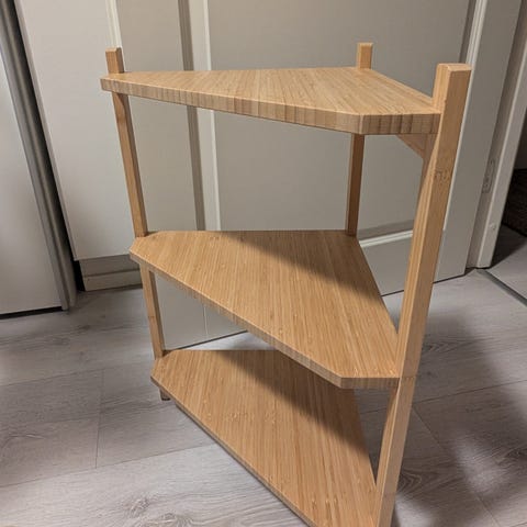 Käyttämätön Helmi-kulmahylly kylpyhuoneeseen. Korkeus säädettävä 235-245 cm. Kerran koottu ja purettu, koska olikin liian korkea meidän kylppäriin. Siksi avattu pakkaus. Vaik nouto.