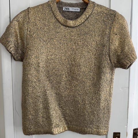 ZARINA WEEKEND, musta/kiiltävä juhlapusero. Neulos kangas. Edessä Kaunis yksityis kohta kaula aukossa.
