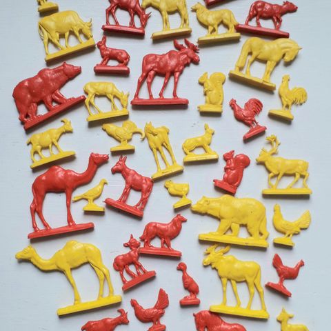 Kuvanmukainen setti muovieläimiä. Purkissa 80 kpl erilaisia mm. maatilan eläimiä.