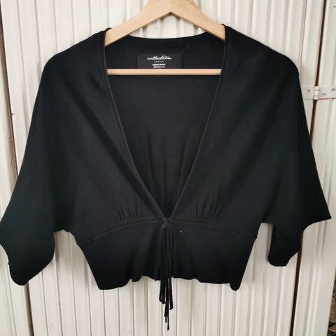 Musta paljettinen bolero, uutta vastaava, kokonaan käyttämättä jäänyt. Väriltään ihan musta vaikka kuvassa näyttää haaleammalta.