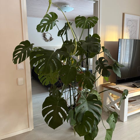 Myynnissä jätti peikonlehti / pistokas, aikeissa todennäköisesti leikata pistokkaiksi tämä iso kasvi :-) kauniissa kunnossa, mutta alkaa olemaan liian iso minun asuntooni... Koko kasvilla on leveyttä noin 3m ja korkeutta noin 2m. Isoimmat lehdet ovat noin 60-80cm.
