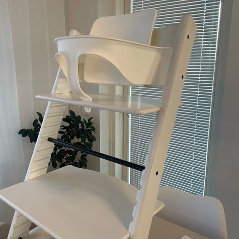 Stokke Tripp Trapp -syöttötuoli erittäin hyvässä kunnossa. Uusi malli. Yhteensopiva Babyset- ja Newborn-set-sarjojen kanssa. Hyvin vähän normaalia kulumaa.