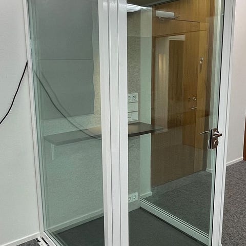 Ilmanvaihto, pistorasia / USB, pöytätaso. Sisä- ja ulkoseinät ääntä heijastamatonta akustista paneelia. Oikein siistikuntoinen!
