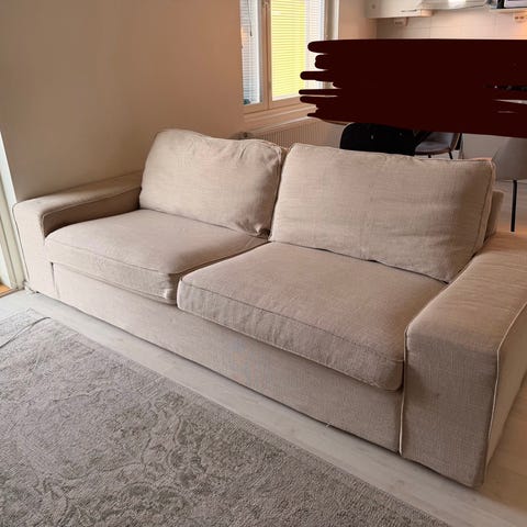 Maskun metallirunkoinen iso sohva, jonka saa myös kahteen osaan kätevästi kuten meillä.