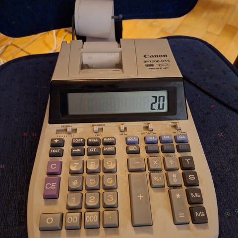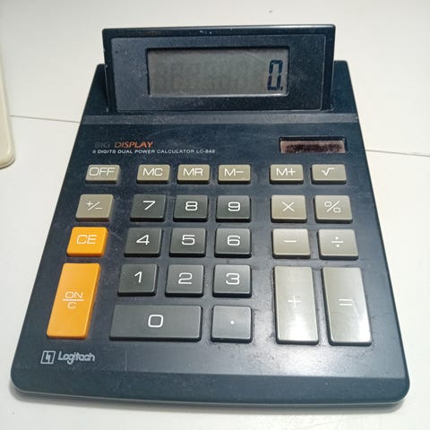 Kaksi Laskinta: Logitech LC-843 ja TOZA ACD-1363 laskimet.