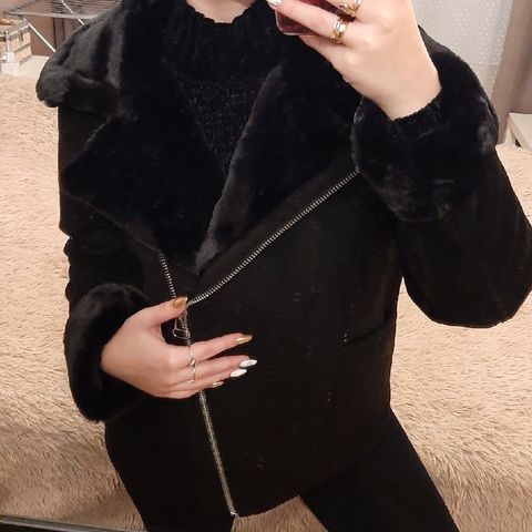 Uudenveroinen musta takki, joka on ollut pari kertaa käytössä.