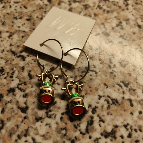 Myydään käyttämättömät Samaskorun Jänisten yö -korvakorut. Korut ovat vaneria ja niissä on oranssi pinnoite molemmin puolin.