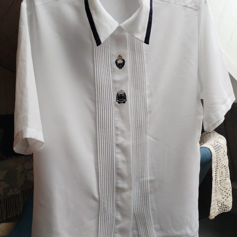 Kaunis valkoinen kirjailtu Lyhythihainen paitapusero, koko 40