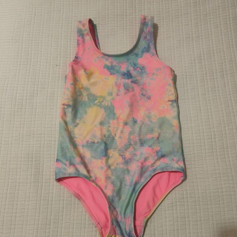 Uutena ostettu, yhdellä tytöllä käytössä ollut uimapuku. Väri tumma pinkki.