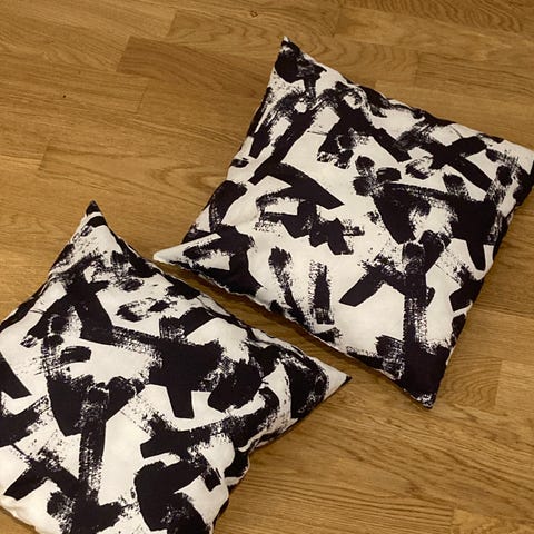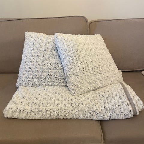 Myydään yhdessä kaksi tyynyä ja kaksi vilttiä.