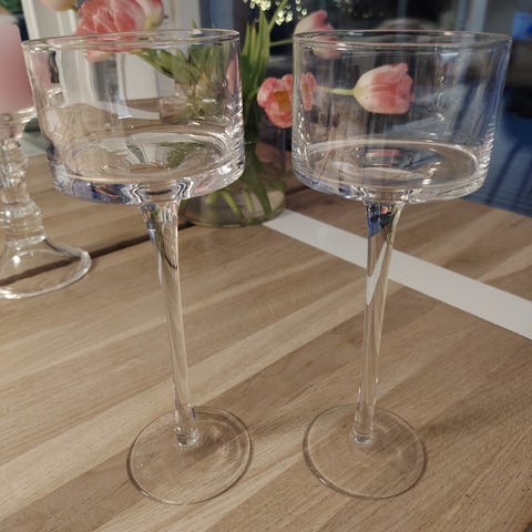 Kaksi kappaletta Finnmarin kynttilänjalkoja. Korkeus 23 cm. Hinta 10,- yhteensä. Vain nouto.