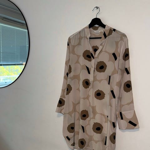 Iki-ihana unikkokuosinen 100% silkkipusero beigessä värissä, pesty kerran eikä ole höyrytetty, niin on jäänyt vähän ryppyiseksi. Käyttökerrat jääneet kahteen. Muuten kunto on erinomainen, ei tahroja tai muutakaan moitittavaa. Hajuton.