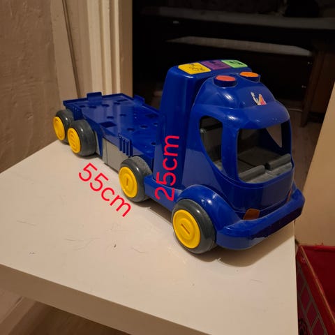 Vedettävä rekka jossa magneetti nosturi ja muotopalikat.