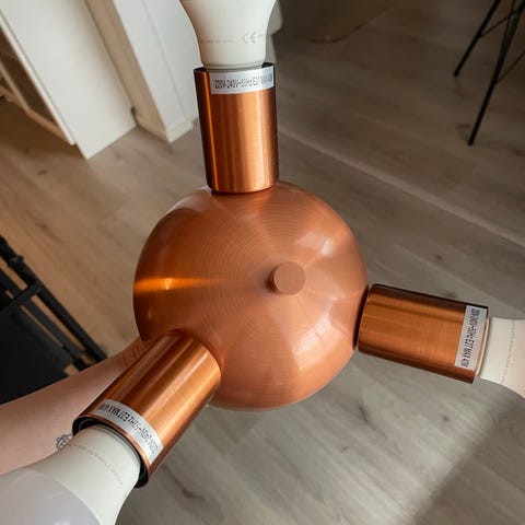 Myydään rosterinvärinen roikkuva kattolamppu. Halkaisija noin 30 cm.