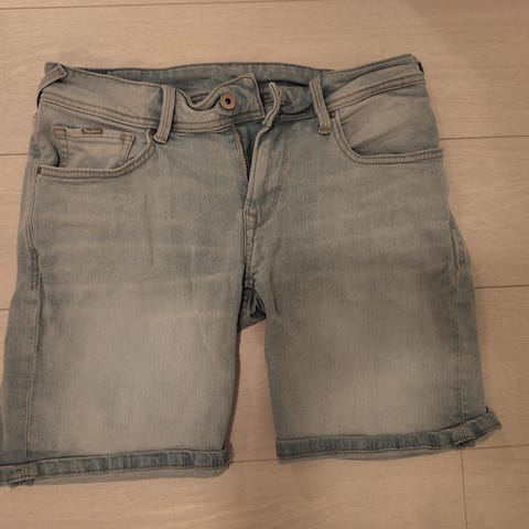 Myydään siniset leveät housut, jossa lyhyemmät lahkeet. Koko 28/28