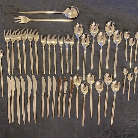 Aterimet ovat hyväkuntoiset ja kiiltävät, vähäisiä käytön jälkiä