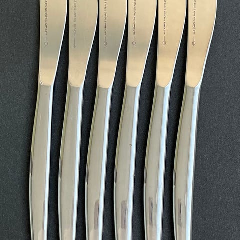 Ruokaveitsi 6 kpl terässä ei hammastusta, varret suorakulmion muotoiset (21 cm)