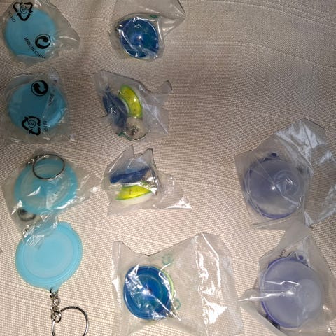Muitakin tupperin magneetteja ja avaimenperiä löytyy, voin laittaa kuvia kiinnostuneille (: