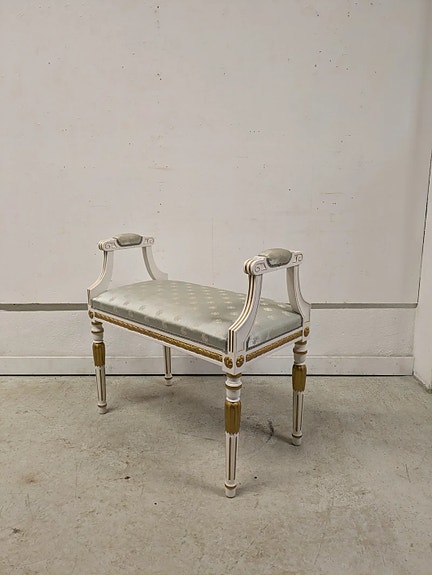 Erittäin hyväkuntoinen Rokokoo tyylin jalkarahi myytävänä. Kangas ehjä ja siisti. Ei hajuja. Runko tukeva. Uudempaa tuotantoa.