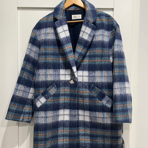 Kuvanmukainen ruudullinen Springfield-takki vähän pörröistä polyesterikangasta. On jäänyt ilman käyttöä.