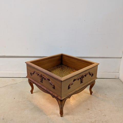 Uudemman tuotannon kaunis Rokokoo sivupöytä myytävänä. Rakenne tukeva. Pari reunakolhuja. Yleiskunto hyvä.