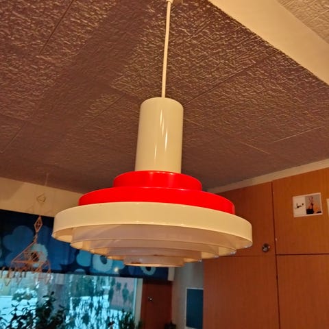 Valaisin kuin moderni veistos! Heikki Turunen suunnitteli Triangel-sarjan Ornon 60-juhlavuoden kunniaksi vuonna 1981. Valaisin on iästään huolimatta hyväkuntoinen.