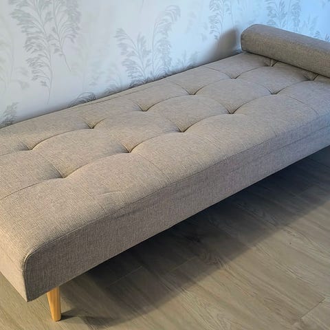 Vaalean beige kahden istuttava sohva. Korkeus 67cm, syvyys 84cm, leveys 180cm. Siisti, ehjä ja hyväkuntoinen. Käsinojien päällä irrotettavat suojapääliset (kuvassa käsinojien päällä ja siksi hieman eriväriset käsinojat kuvassa) ja selkä- ja istuinpäälliset irrotettavat. Ostettu Askosta. Sijaitsee Sirkassa ja pitää kantaa yläkerrasta. Koiratalous, mutta koirat eivät ole olleet sohvalla eivätkä muutoinkaan yläkerrassa, jossa sohva on ollut.
