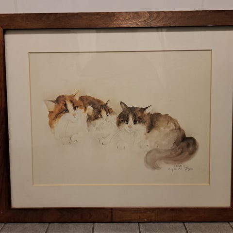 Myydään kuvien canvas kissataulu kehyksineen. Koko 40x30cm.