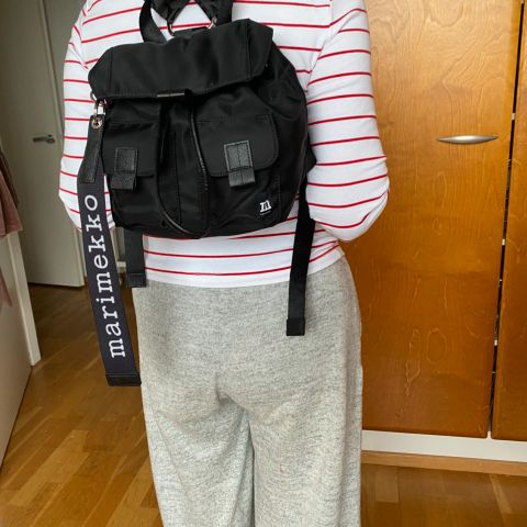 Uusi (=täysin käyttämätön) Marimekon Pisaroi-reppu. Sisältä muovitettu, yksi sisätasku.