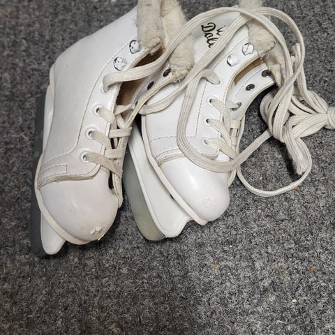 Muumi lasten luistimet ovat hyvässä kunnossa. On käytön jälkiä.