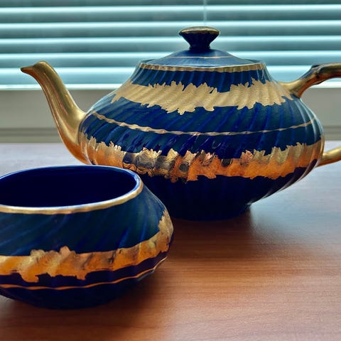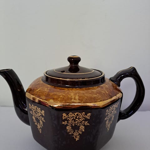 Kaunis ja ehjä vintage teepannu. Sadler: The Duke of Wellington & soldiers of the battle of Waterloo, kannessa: TheBattle of Waterloo 1815. Ta