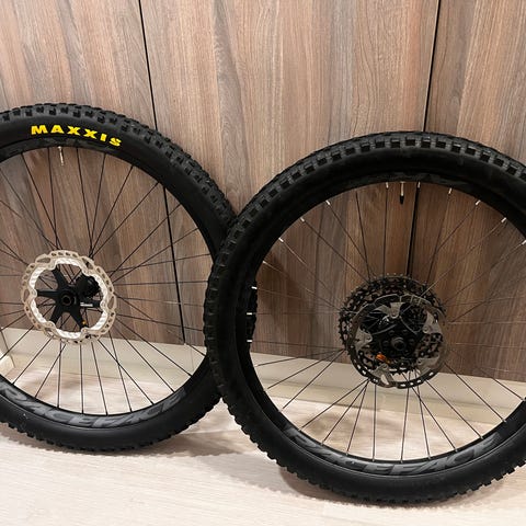 Kuvissa takana Aggressor 2.5wt exo, edessä minion dhf 2.6 exo+ maxx terra, kunto hyvä ja kuuluu hintaan