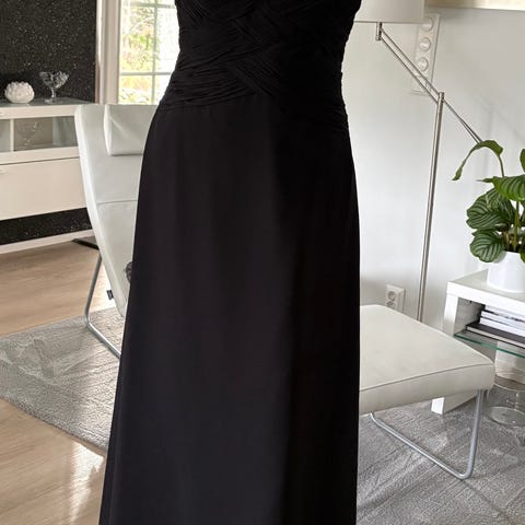 Kaunis tumman hopean harmaa Magic Nights iltapuku. Kokolapussa 48, mutta vastaa ennemminkin 44/Xxl. Huivi sopii käytettäväksi vaalea tai tumma puoli näkyvissä. Helmassa vesitahra, joka korostuu kuvassa (luonnon valossa tuskin huomaa), joka todennäköisesti lähtee pesulassa tai jos uskaltaa mekkoa pestä itse. Ovh yli 200€