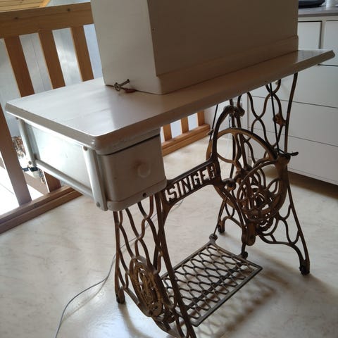 Singer-ompelukone 1920-luvulta. Ollut käyttämättömänä vuosikymmeniä. Toiminut koriste-esineenä. Sisältää runsaan määrän lisätarvikkeita. Myydään tilanahtauden vuoksi.