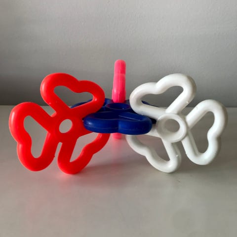 Puiset kirjainpalikat 80-luvulta, sivuilla kirjain, numero tai eläinkuva. Lisäksi puinen Punahilkka palapeli, jossa neljä eri kuvaa.