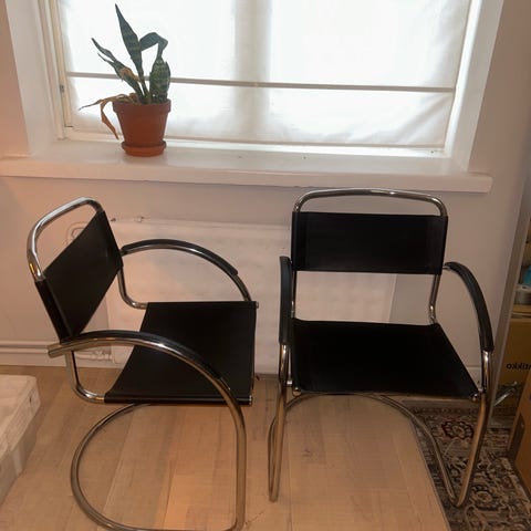 Tanskalaisia vintage tuoleja nahka istuintyynyillä, suunnittelija Kay Kørbing