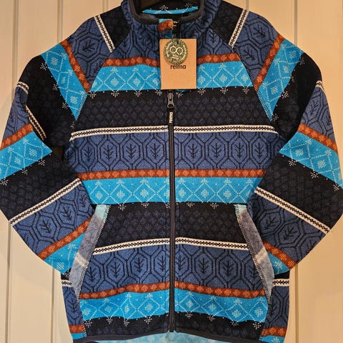 Reiman tummansininen vetoketjullinen villapaita, joka ei kutita. Ei taskuja. Siistissä kunnossa, hihansuiden alapuolella saumassa näkyy jonkin verran vaaleita joustinkuituja.