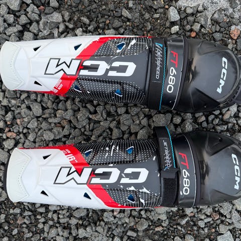 Reilun kauden pelatut CCM FT680 polvisuojat.