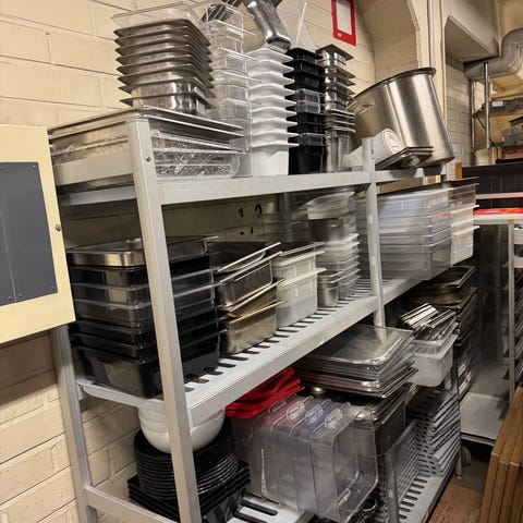 Sekalainen seurakunta ravintolakeittiön tavaraa mm: