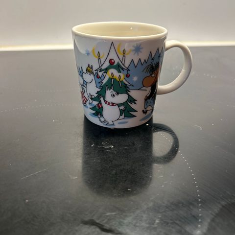 Karsin muumimukikokoelmaani, ja tässä tarjolla Kuusen alla -muki (talvimuki 2013). Tarraton, ollut vitriinissä osana kokoelmaa. Virheetön kunto kaikin puolin, ei virheitä lasitteessa tmv.