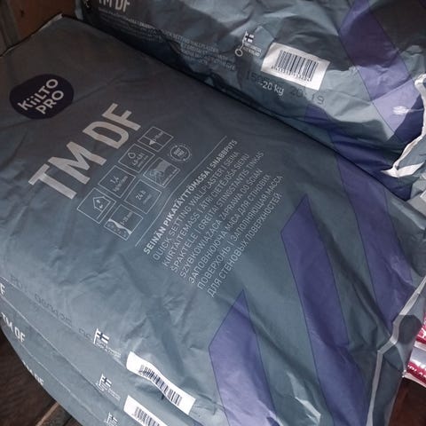 Pikamärkätilatasoite Kiilto SR DF 20kg. 15€/säkki. Arkisin mahdollista kuljetus Tampereelle.