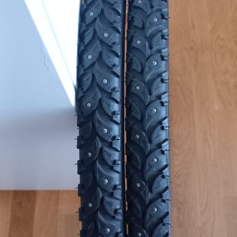 Todella vähän ajetut Suomi Tyres Hakkapeliitta W106 polkupyörän nastarenkaat, jonka koko on 28x1 5/8 x 1 3/8