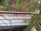 Vene ollut muutaman vuoden ylösalaisin käännettynä koska sille ei ole ollut käyttöä. Penkit varmaan joutuu uusimaan, mutta muutenhan tämä on vakaa muovi vene. Tästä vene jollekin moneksi vuodeksi.
