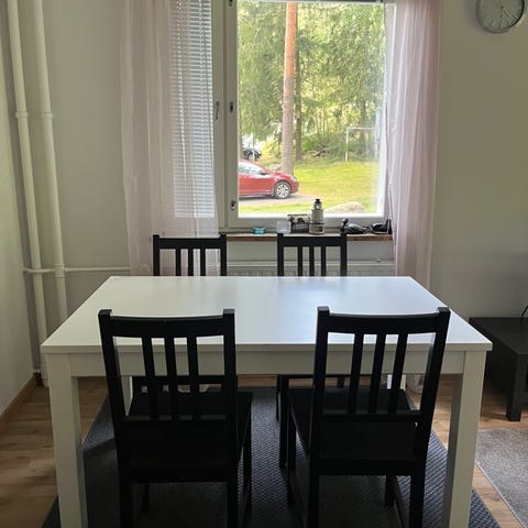Vähällä käytöllä ollut Ikean Liatorp jatkettava pöytä myytävänä. Kunto erittäin hyvä. Jatkopala taitettava ja mahdollista säilyttää pöydän sisällä. Jatkon sivut mukana. Jalka irroitettava.