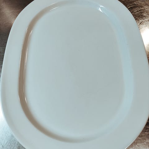 Soikea tarjoiluastia, syvyys 7cm, leveys 23cm ja pituus 28,5cm. Hyvässä kunnossa.